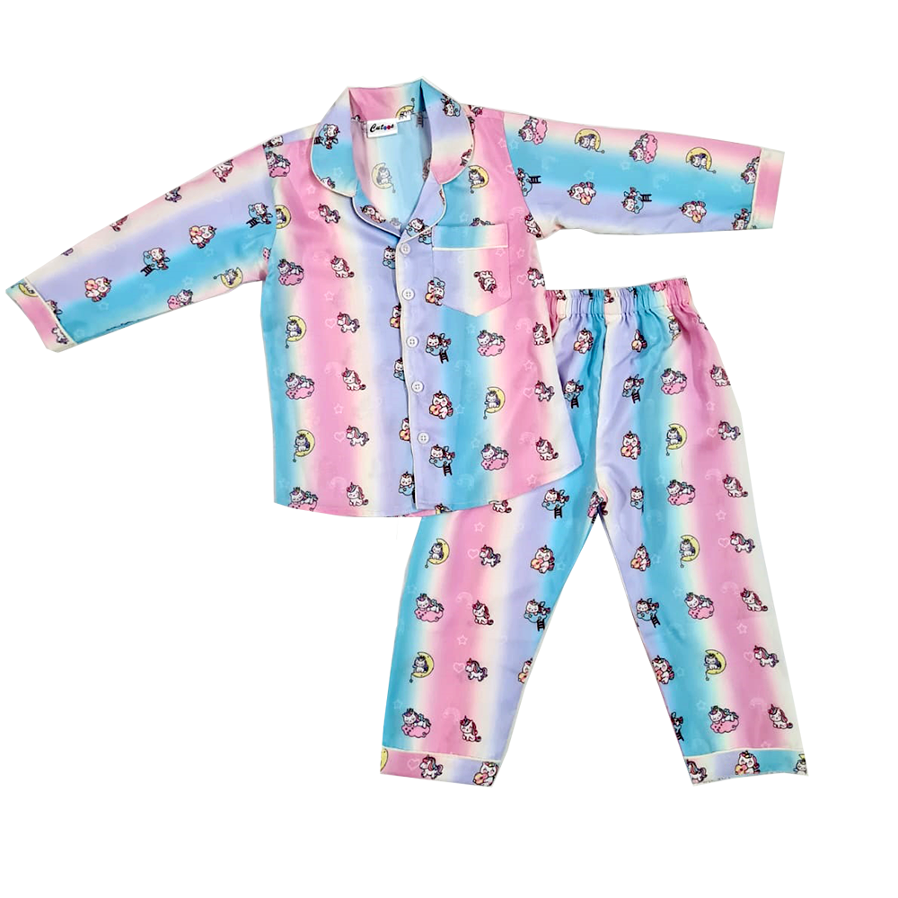 Unicorn  print Cotton full sleeves night suit for your little one. Its made by 100% Cotton.